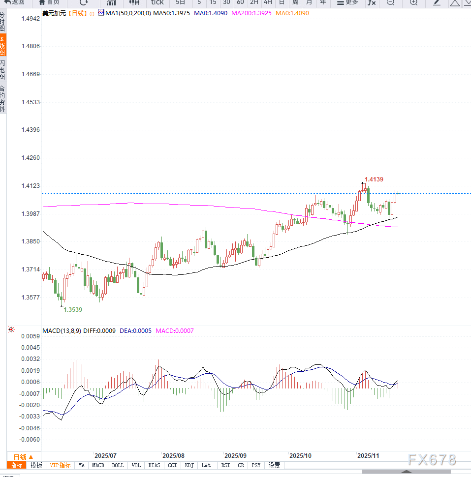 短线波动虽可能受美国数据影响,但中期方向仍倾向美元优势维持。若加拿大数据明显不及预期,USD/CAD有机会重新测试1.4150甚至更高区间。