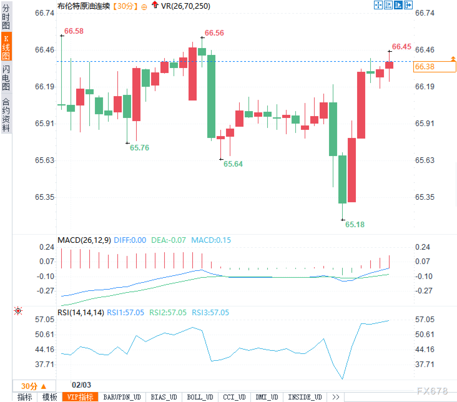 汇通财经APP讯——布伦特原油2月3日周二欧洲时段交投于66.30美元附近,近期走势陷入震荡格局。开盘后价格一度明显